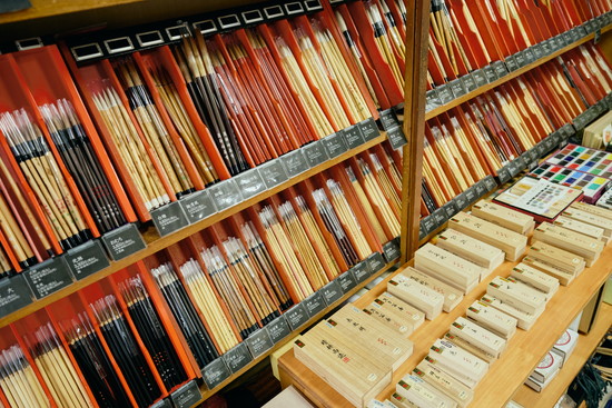 約200種類もの筆が並ぶ店内は、壮観。書に画に、趣味人からプロまで、愛用者は幅広い層にわたります。