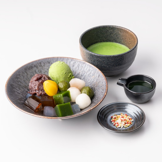 小豆は厳選した希少な大納言を使用しており、抹茶ゼリーは茶寮都路里独自の配合で、抹茶の風味を損なわないよう細心の火加減で調理し、仕上げています。もちろん使用する抹茶も日本茶専門店として高いクオリティを保つこと基本に、メニューとの相性を考え種類を使い分けるなど茶舗のプライドを託した味を提供しています。