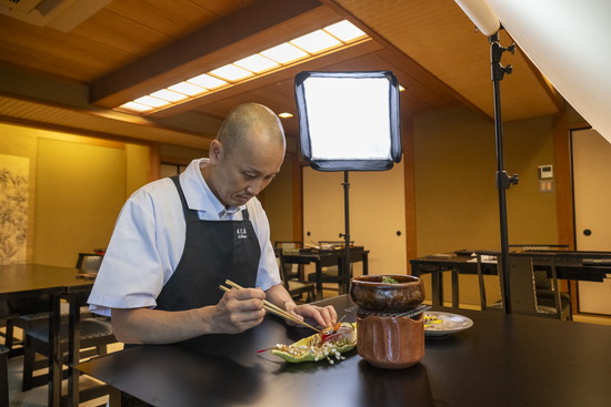 辰巳屋は1840年創業の茶問屋に始まり、料理旅館を経て、料亭を営まれるようになりました。取材にうかがったのは、夏の盛りの8月中旬。盂蘭盆(うらぼん)のただ中でしたが、8代目当主の左聡一郎さんにご用意いただいた料理のお蔭で、撮影現場は秋の気配に満ちていました。